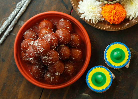 Deep-fried milk solids (Khoya) soaked in a warm rose-flavored sugar syrup.