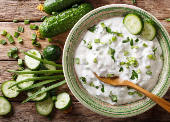 Yogurt mixed with tiny, crispy chickpea flour pearls (Boondi) and light seasoning.